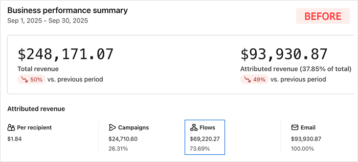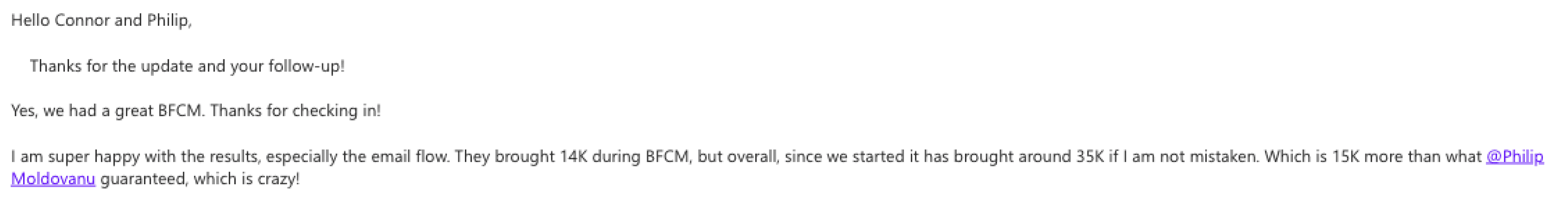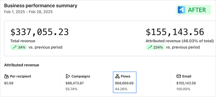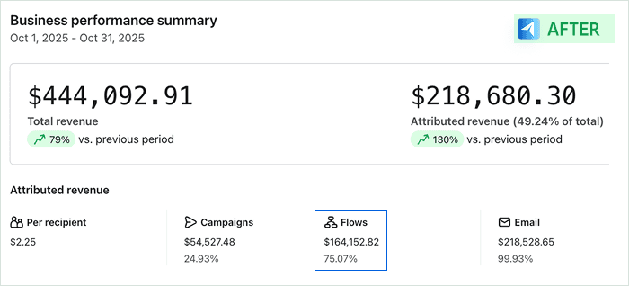 + $71,000 in a single month from our email flow systems, with email revenue almost tripling in less than 30 days of going live.