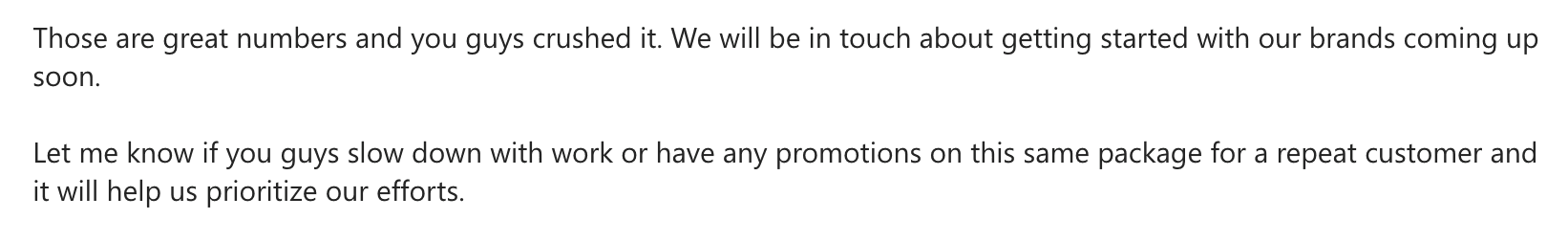 "We’ve worked with a lot of email agencies in the past…you guys nailed it